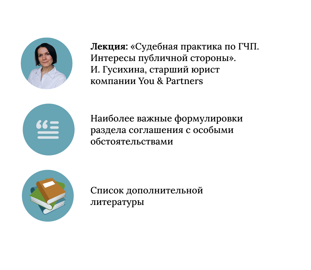 Также мы рассмотрим практические кейсы и рекомендации по организации работы с особыми обстоятельствами, включая подготовку разделов об особых обстоятельствах в концессионных соглашениях и соглашениях о ГЧП и МЧП.